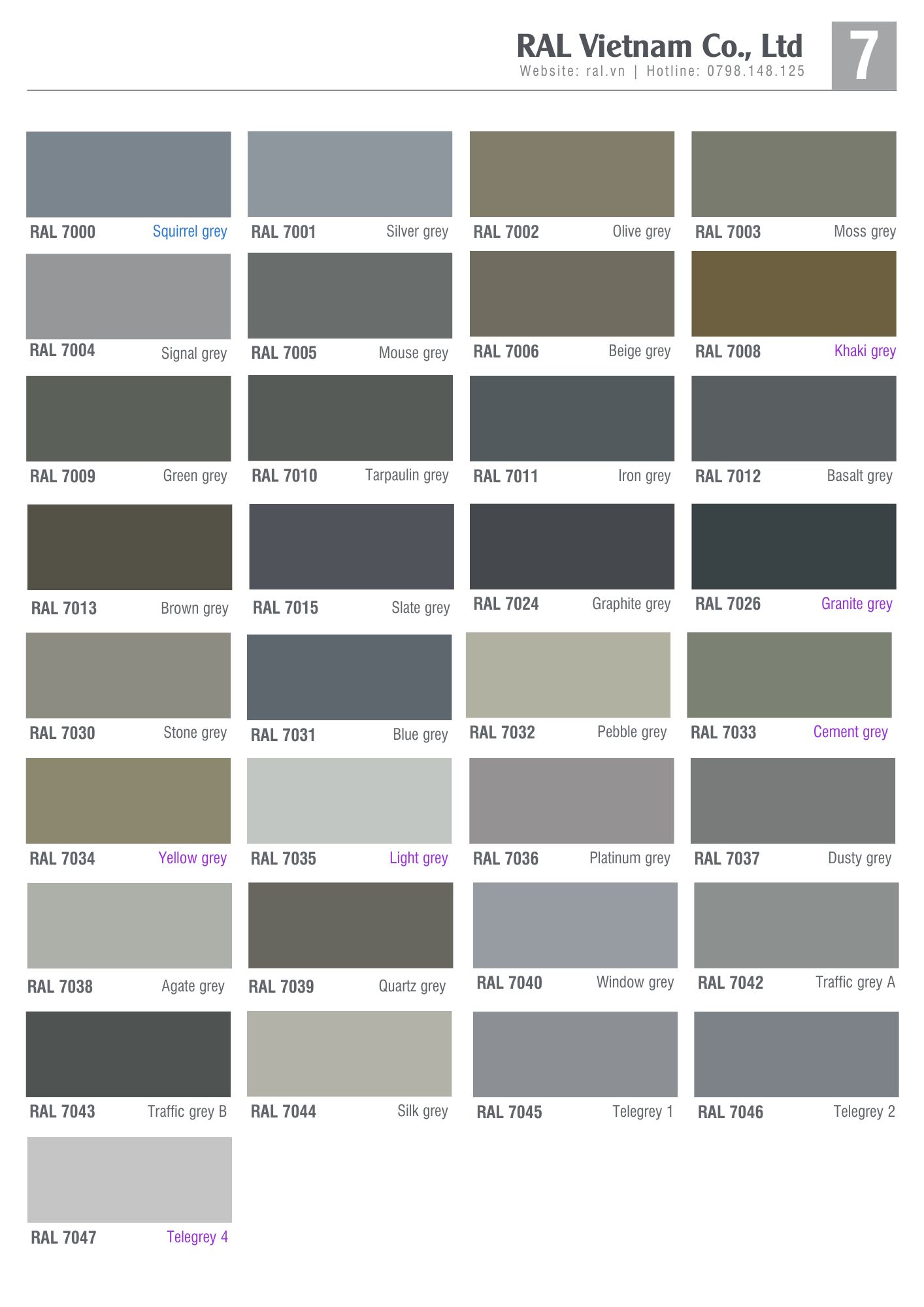 Bảng Màu Sơn Epoxy RAL Nhóm Màu Xám – Chuẩn Màu Sơn Epoxy Quốc Tế