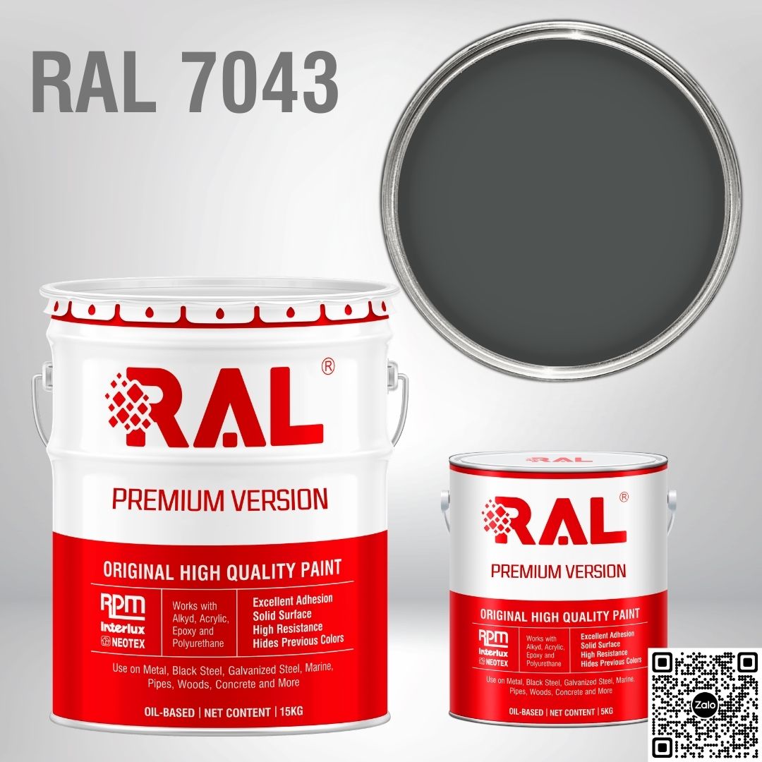 RAL 7043 (Traffic Grey B) là màu xám đậm thuần thuộc hệ RAL Classic, được thiết kế phục vụ các ứng dụng công nghiệp yêu cầu độ bền cao, tính ổn định màu và khả năng che phủ tốt trên diện tích lớn.