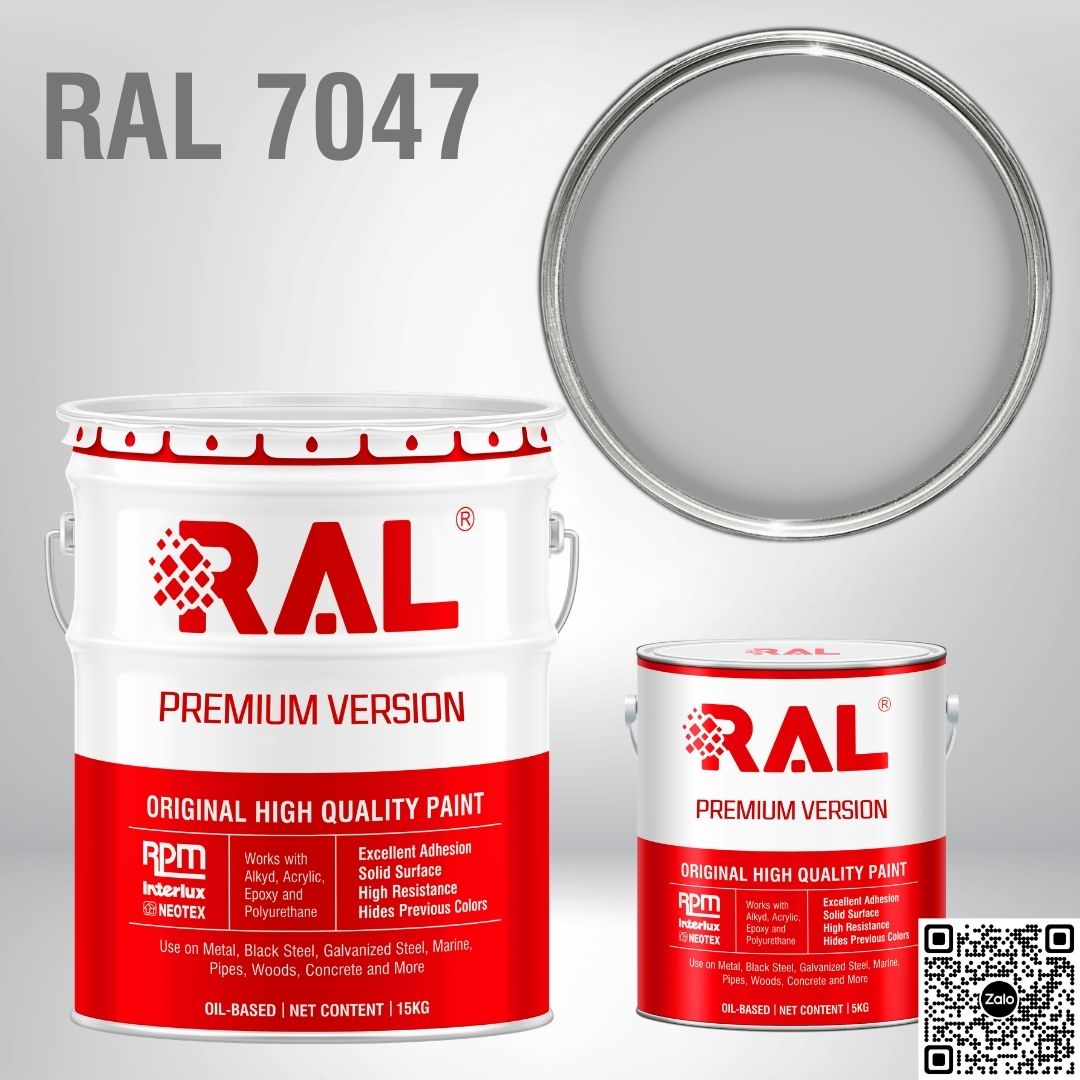 Sơn RAL 7047 (Telegrey 4) là màu xám sáng công nghiệp, chuyên dùng cho sàn bê tông trong môi trường yêu cầu sạch và kiểm soát chất lượng cao. Màu này giúp tăng độ sáng không gian, dễ phát hiện bụi bẩn và nâng cao tiêu chuẩn vận hành, đặc biệt phù hợp cho nhà máy điện tử, thực phẩm và phòng sạch.