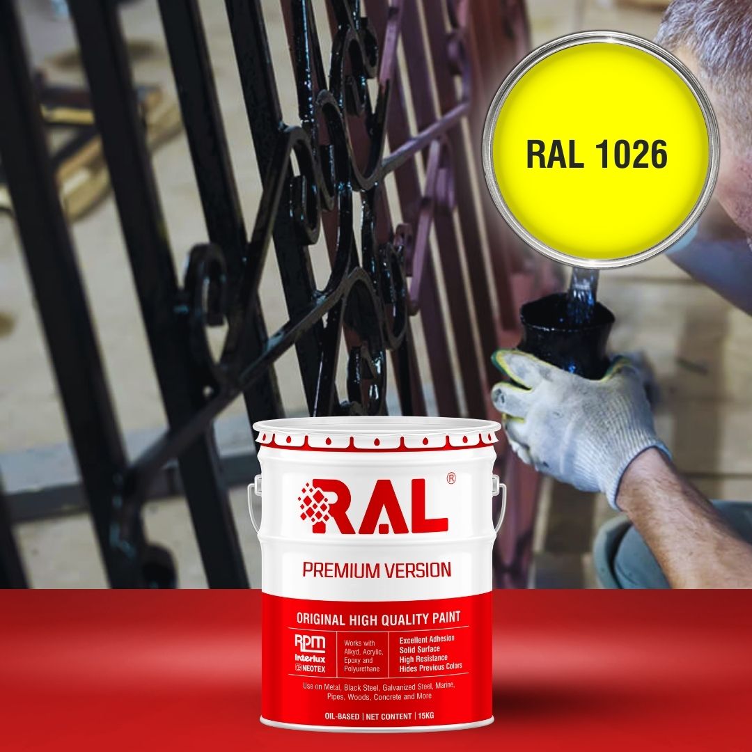 Sơn sắt thép Acrylic 2IN1 (Lót + phủ) RAL RAONER 2IN1 1026 là loại sơn 1 thành phần gốc acrylic. Sản phẩm này có độ bóng vừa với khả năng cầm bóng tốt. Sản phẩm này là loại sơn khô nhanh. Dùng như là lớp phủ cuối trong môi trường khí quyển.